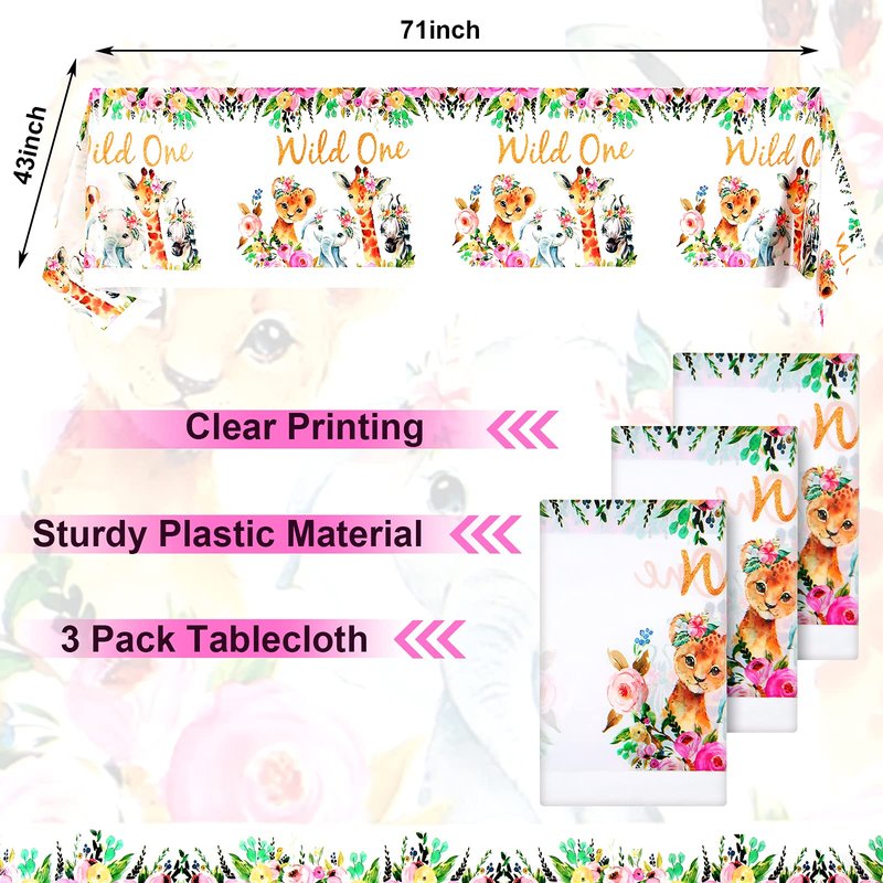 Breling Wild One Tablecloth, 3 Pack, 43 x 71 Inch, Animal Safari, Jungle Theme Birthday, Baby Shower Party Supplies, Disposable, Polyethylene (PE)
