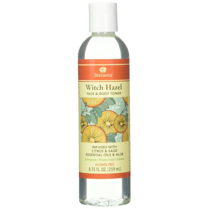 - Bretanna Witch Hazel helps tone, clean and hydrate skin. May reduce blemishes form acne and other skin irritations, and delay singe of aging. Citrus oil creates an energizing, fresh scent.