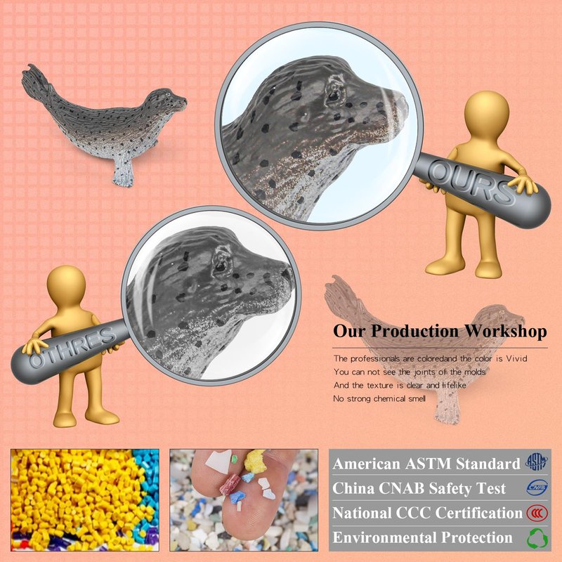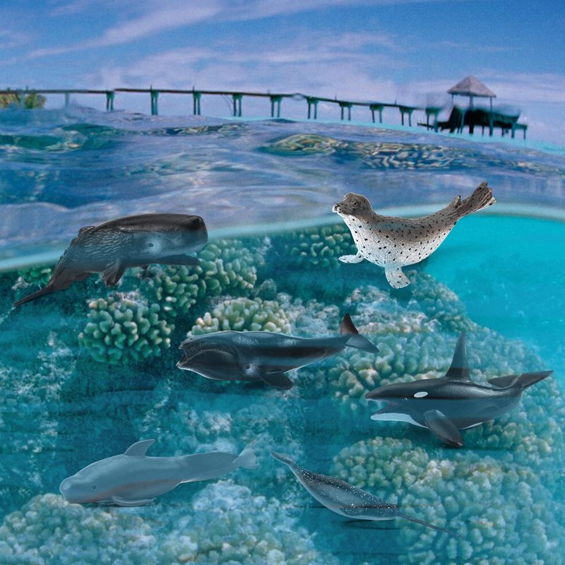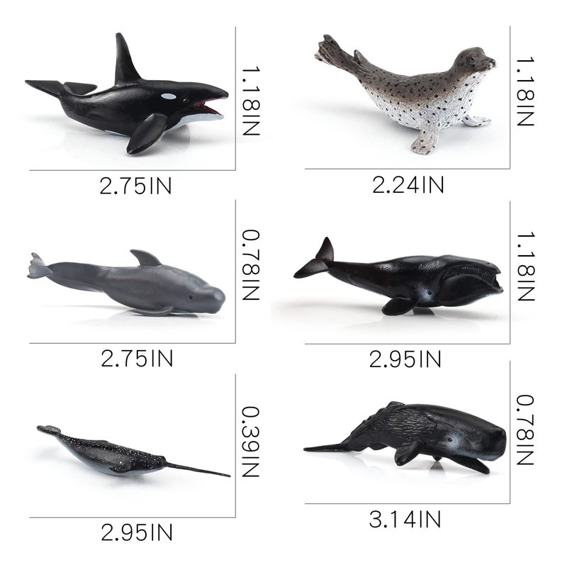 - WHAT YOU GET - 6PCS Sea Animals Figurines Set,including white shark figure,whale figure,pilot whale figure,tiger shark figure,seals figure,killer whale figure,walrus figure.