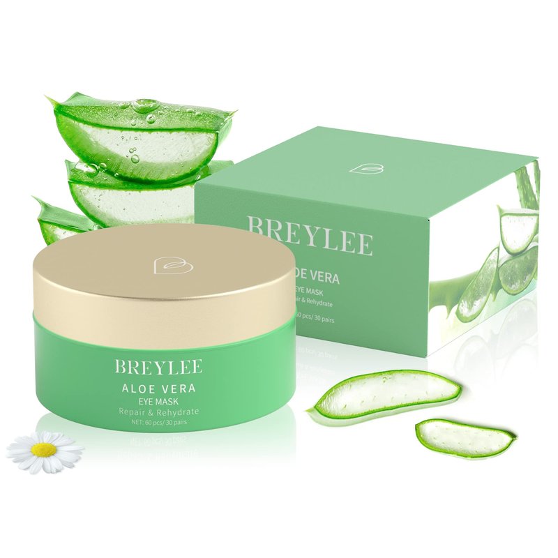"BREYLEE Aloe Vera Eye Masks - 60 Pcs - Reduce Puffy Eyes & Dark Circles, Firm & Improve Under Eye Skin, Pure Natural Extracts for Youthful Appearance & Reduction of Fine Lines and Wrinkles."