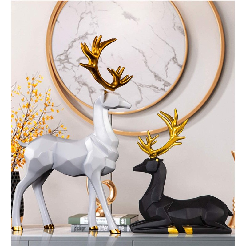 BrichLife 2pcs 3D Geometric Elk Resin Statue, Seated and Standing Elegant Lucky Deer, Luxurious Simple Style Ideas, Suitable for Living Room, Wine Cabinet, Display Stand, Bedroom, Office Desktop