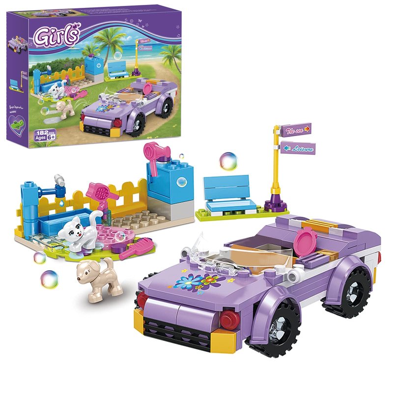 BRICK STORY Girls Friends Convertible Car Building Sets with Pet Bathing Pool Role Play Building Toys Creative Gift for Kids Aged 6-12 (182 PCS)