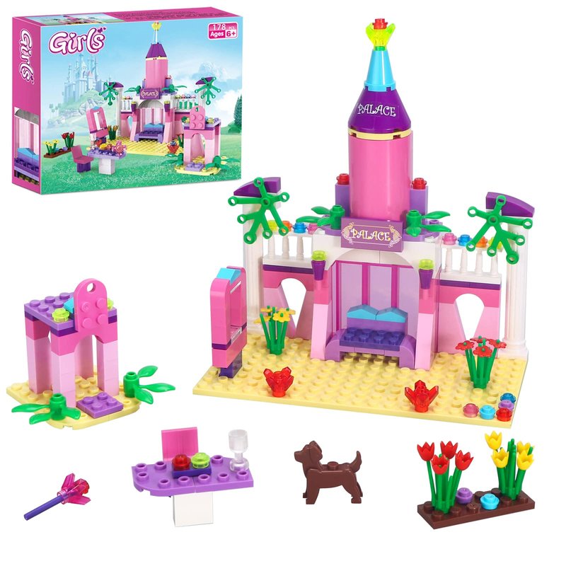 - 【Girls Princess Castle Building Set】- Build a pink palace castle with 1 dog and 1 doll. Features greenery and flowers, boys and girls can image living in this castle wonderland. This princess theme toys set help kids grow imaginations as they create their own fairy stories.