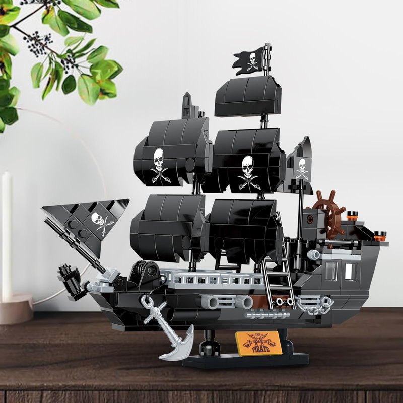 - NEW 2023 Pirate Ship Set - the black hull and huge sails exquisitely recreate the classic styling mysterious pirate ships of the movie. The sturdy design pirate ship model with display shelf, can be a cool desk decoration