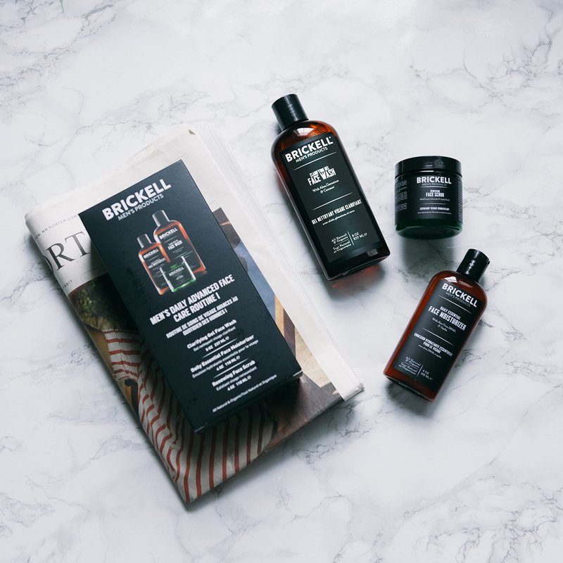 Brickell Men's Daily Advanced Face Care Routine I, Gel Facial Cleanser Wash, Face Scrub, Face Moisturizer Lotion, Natural and Organic, Unscented, Men's Skin Care Gift Set