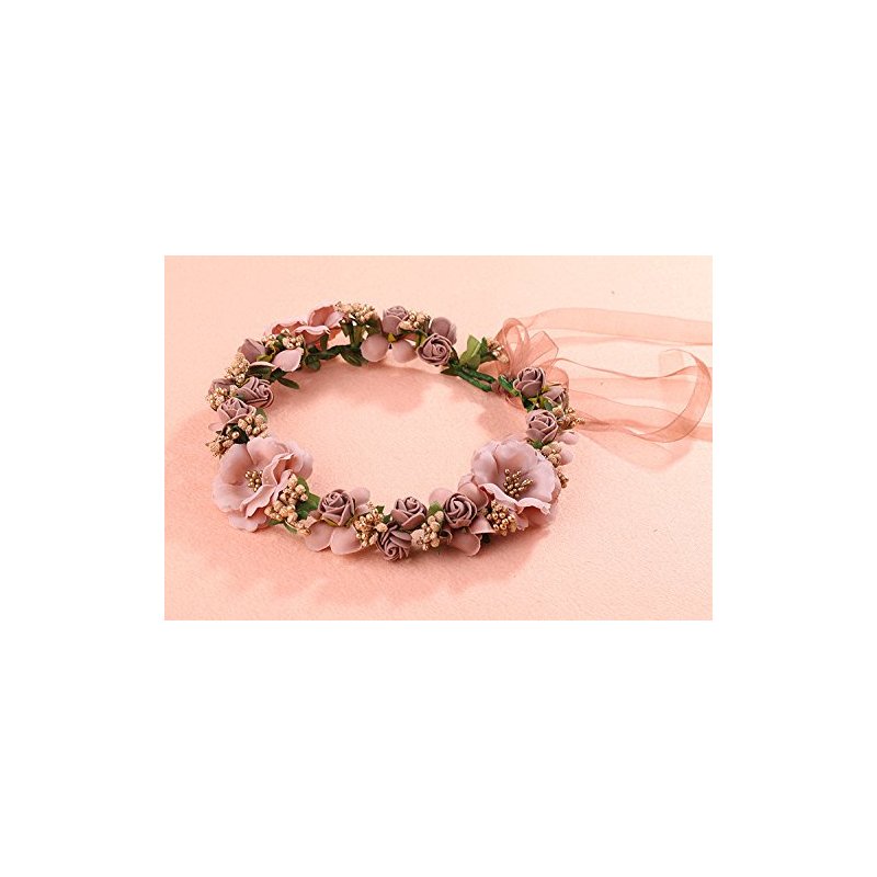 Bridal Flower Garland Artfen Headband Flower Crown Hair Wreath Halo Adjustable Ribbon Wedding Festivals Red Bean Paste