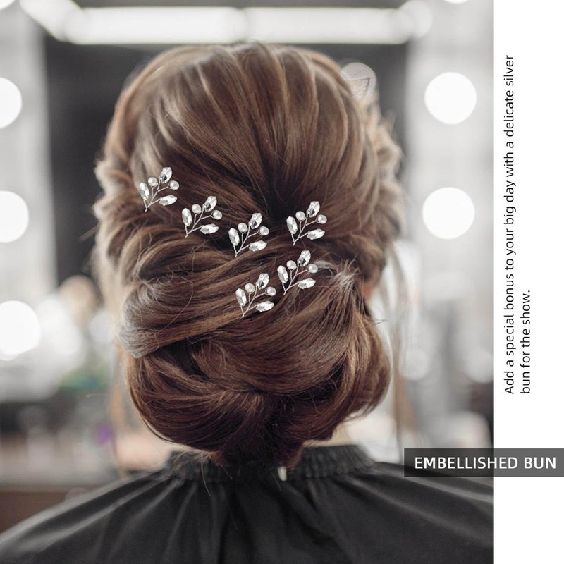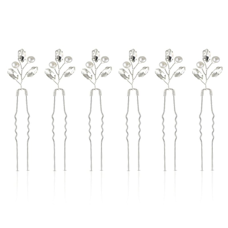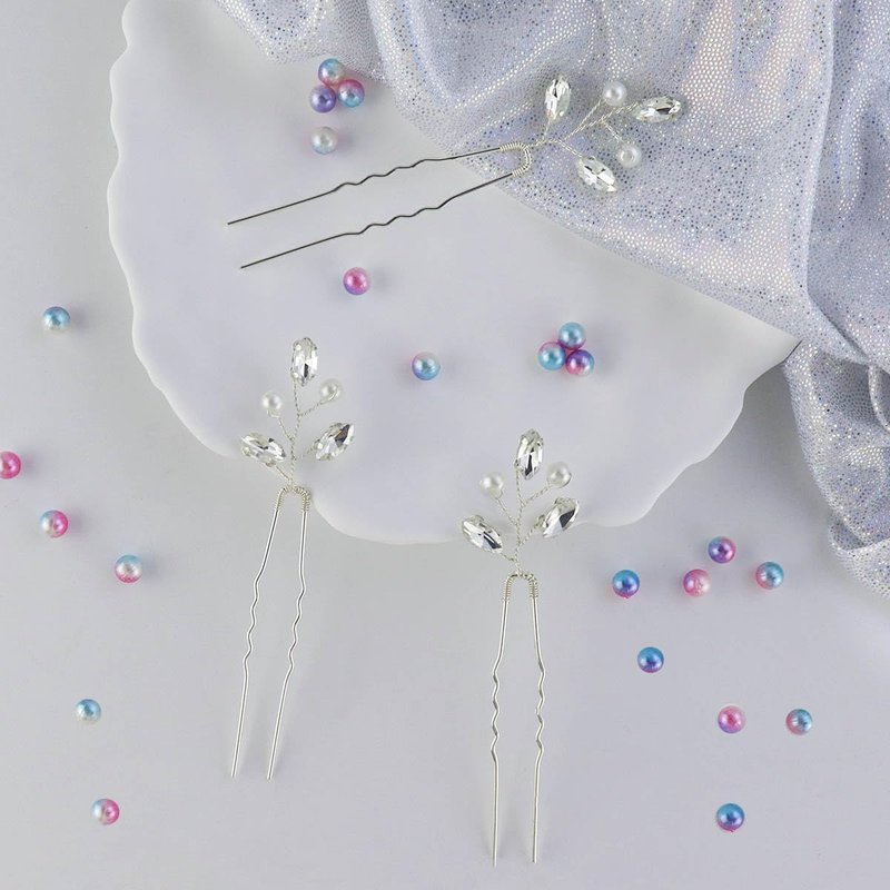 Name:Wedding Hair Pins Material:Water diamond+copper wire Features: High quality materials:This bride hair clips are made of high-quality materials. These hair clips are made of high-quality copper wire, artificial pearls, and crystals, which are not only durable, but also resistant to damage and fading. Easy to use:Our pearl rhinestone hair clip are easy to operate.Simply curl up your hair and insert these hair clips to easily decorate and secure your hair, helping you create an elegant appearance Exquisite design:This silver hair clips have a delicate and attractive design. The hairpin is meticulously wrapped with copper wire, adding a touch of retro charm. Decorated with three dazzling crystals resembling leaves and two beautiful pearls, these hair clips shine brightly. Color:Silver Package:6×Wedding Hair Pins Tips:Please note that the end of the wedding hair pin is very sharp, be careful when using it!