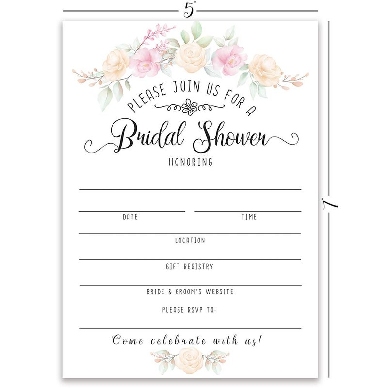 - NO WORRIES - With this set of bridal shower invitations, you will receive a bundle of twenty-five 5x7 invitation cards and twenty-five A7 envelopes. They are easy to fill out and send with your personal touches.