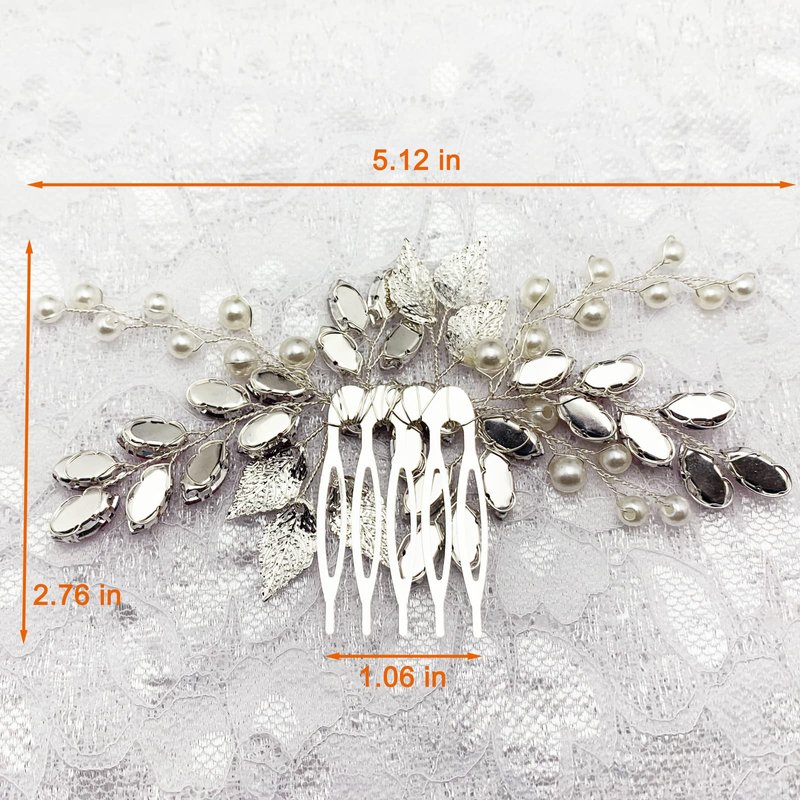 - 【Color】 This bride hair accessories is with silver color branches and leaves and comb pin, white pearl, blue (or green or wine red) rhinestone, meet your different needs of hair decoration and hairstyle DIY