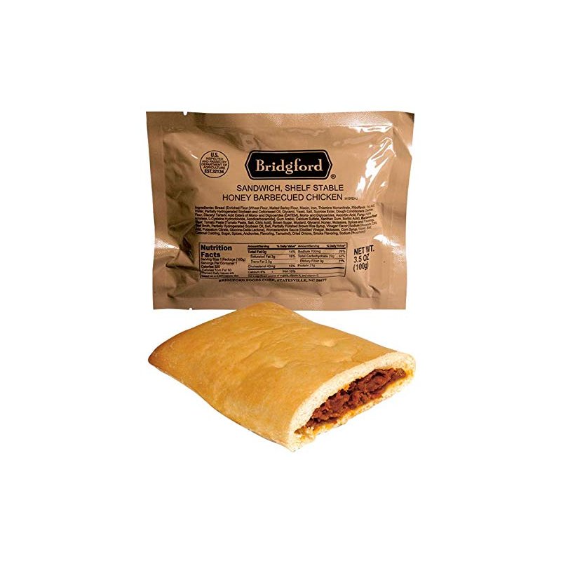 Honey BBQ Chicken - 3 pack. This is for 3 individually wrapped pack of Honey BBQ Chicken. These are brand new with a 1-3+yrs shelf life. Great for hiking, camping, preppers, survival or just as a snack. From Manufacture: An adventure of flavors whipped up into one tasty sandwich. Nutritional Benefits 290 calories and 12 grams of protein per serving. Weight 3.5 ounces per sandwich Preparation - No water or heating is required. Just tear, open and eat.