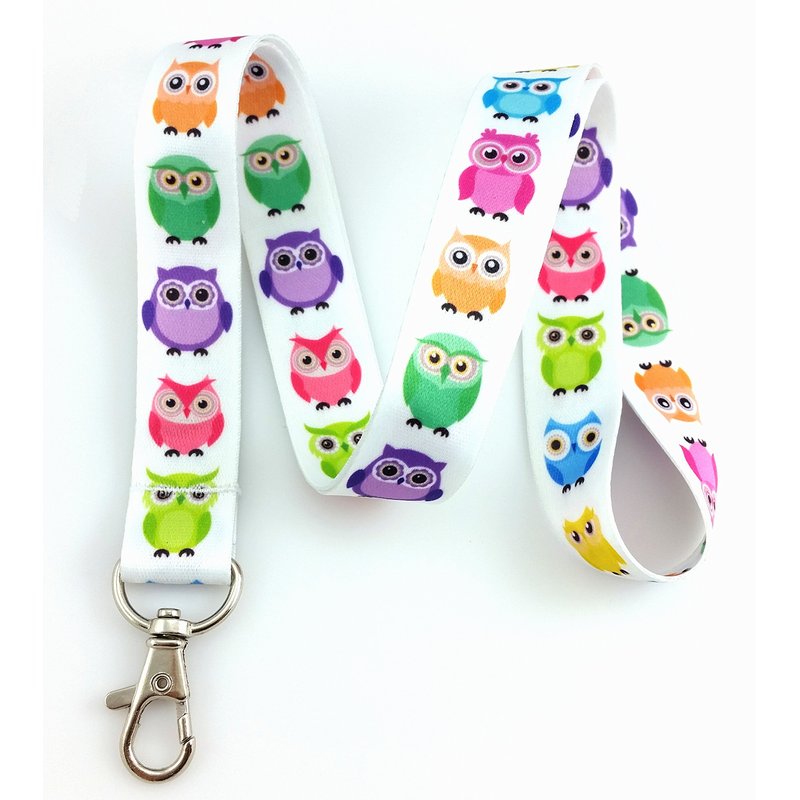 Bright Owl Print Lanyard Key Chain Id Badge Holder