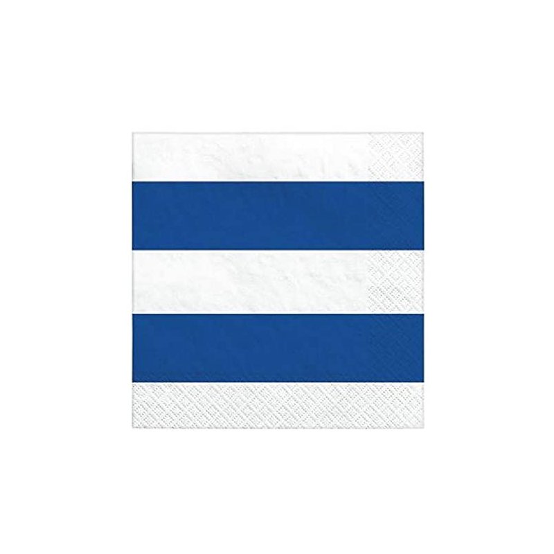 Royal Blue Striped Beverage Napkins add timeless elegance to your dessert table! These small two-ply paper napkins feature royal blue stripes that really pop off the white background. Whether you're hosting a special event or just having friends over for dinner, keep a stack of these small striped napkins on hand. Royal Blue Striped Beverage Napkins product details: 16 napkins per package 5in x 5in when folded Made in the USA