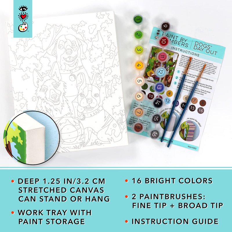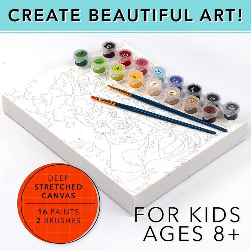 - Artistic Mastery Made Easy: Elevate your child's artistic abilities with our framed paint by number canvas kit, designed to make mastering the art of painting simple and enjoyable. With 16 vibrant paints and 2 brushes included, they'll have everything they need to create stunning works of art.