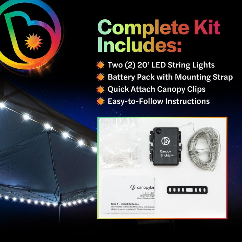 Brightz CanopyBrightz LED Canopy Lights, White - Outdoor Canopy Tent Lights for 10ft x 10ft Tents - Instant Pop Up Canopy Lights - 40 ft String Light