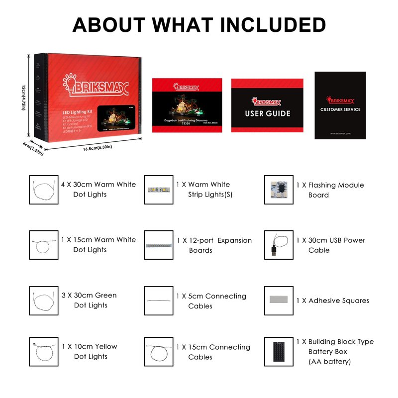 - Package contains dot lights, expansion boards, connecting cables, battery holder(batteries not included), adhesive squares, and instruction.