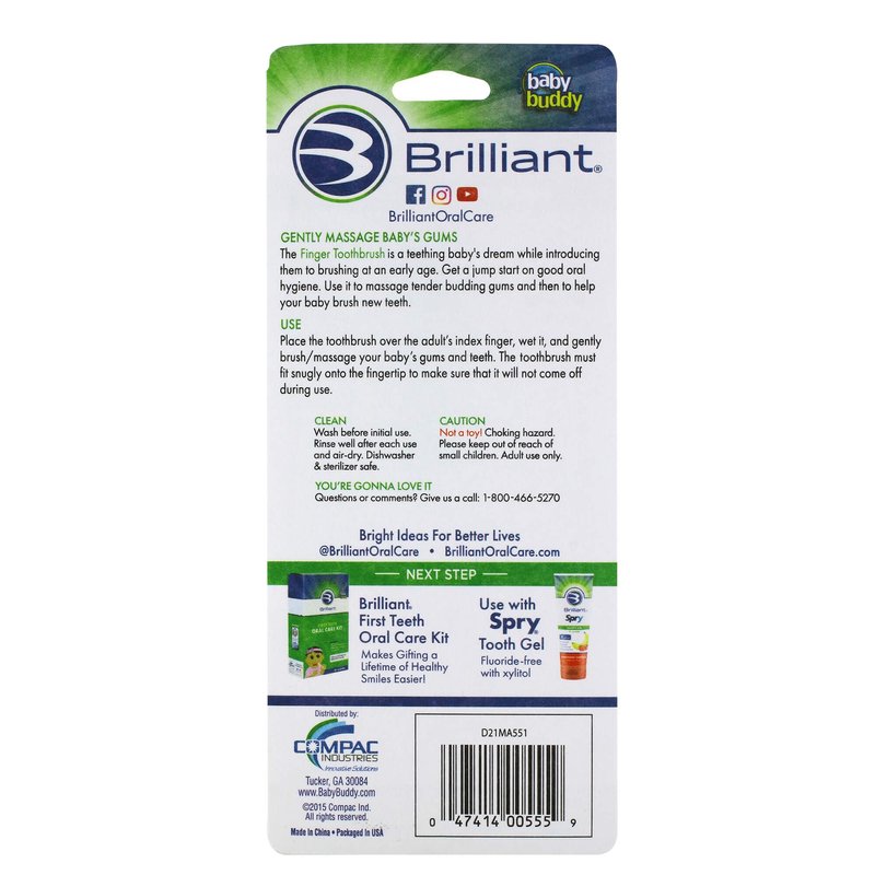 - Baby Finger Toothbrush; soothes sore gums while brushing baby teeth as they begin to emerge; for Babies 3 months old and up; works as both a baby toothbrush and baby teether; baby necessities