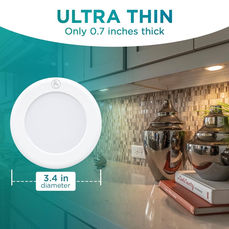 - 55 LUMENS - Super bright, long-lasting battery LED lights with a 3000K warm white glow, this makes these battery-operated wireless puck lights perfect for any room in your house including your kitchen, bathroom, pantry, closet, office, garage, and bedroom.