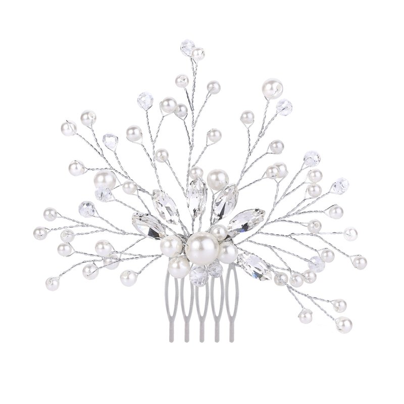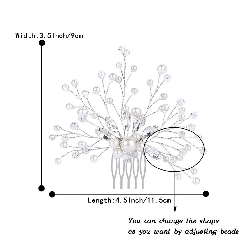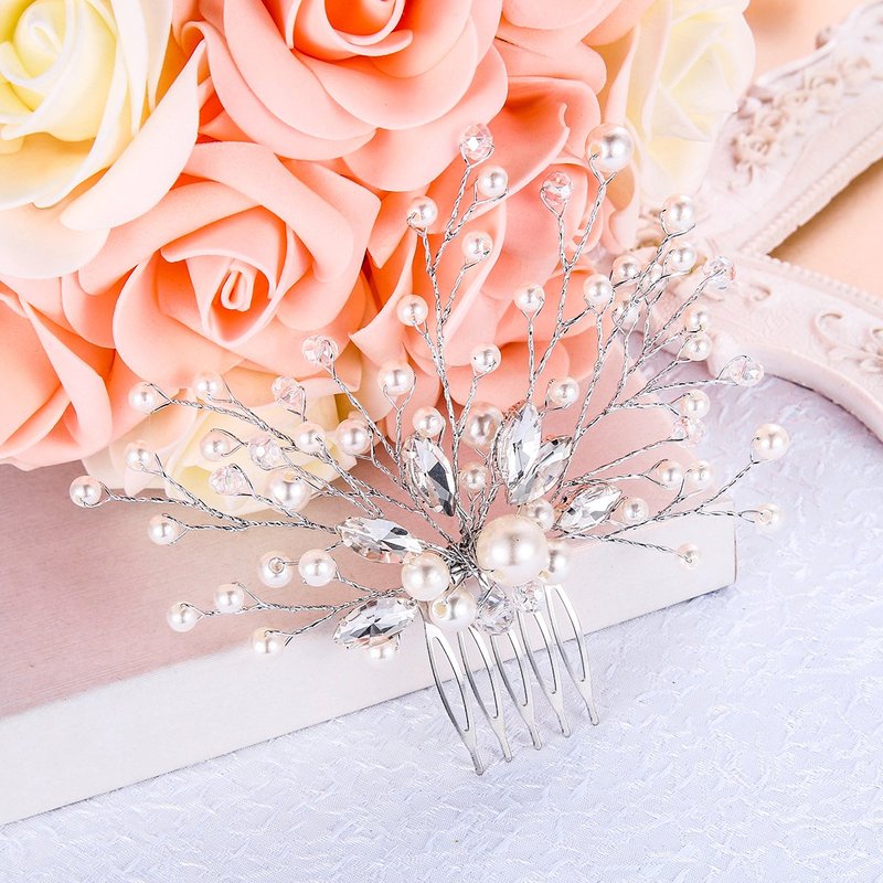BriLove Wedding Bridal Hair Comb Hair Accessories with Crystal Bead Simulated Pearl Handmade Filigree for Women Clear Silver-Tone