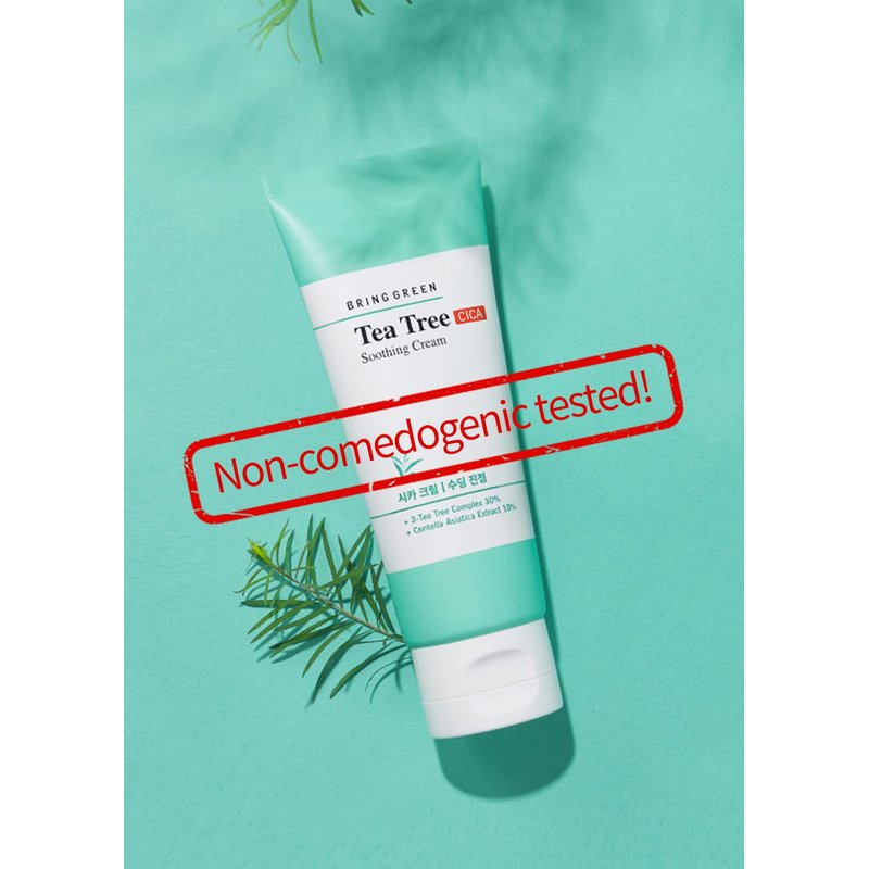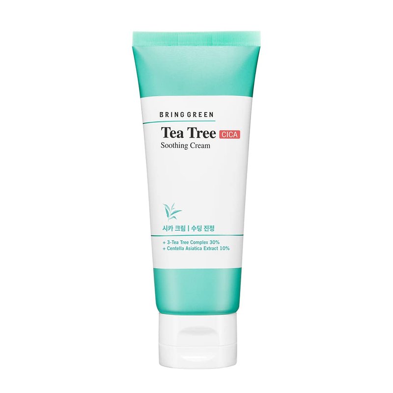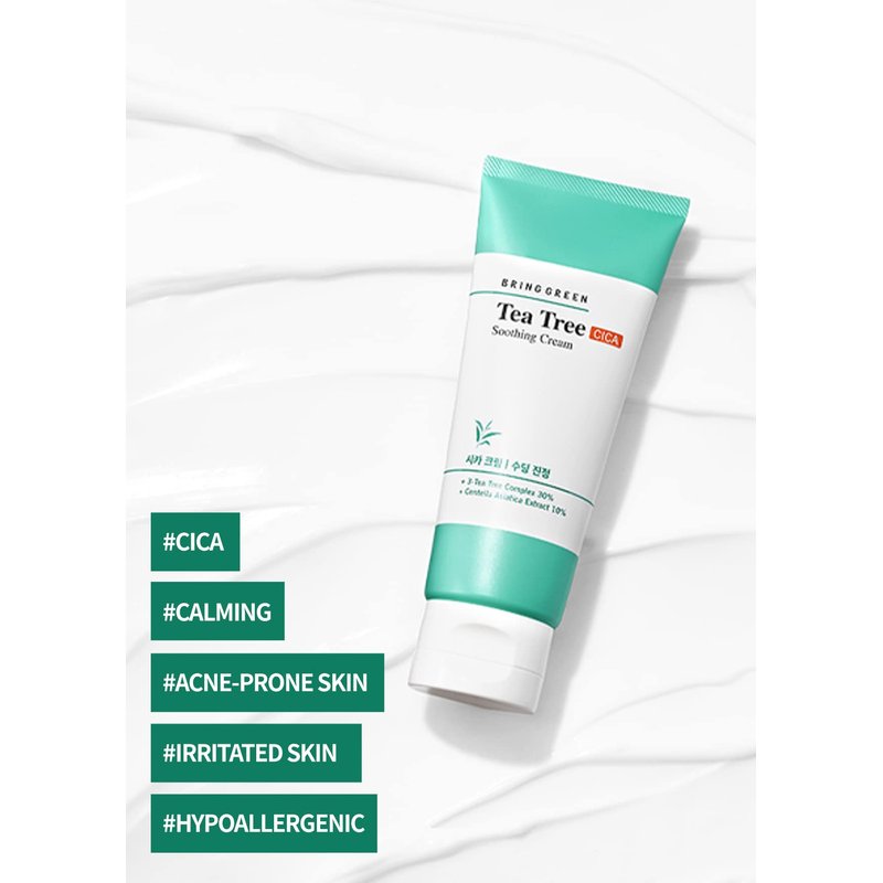 BRING GREEN Tea Tree Cica Soothing Cream - Oil Control Face Moisturizer, Acne & Redness Relief, Sensitive Skin, Korean Night Cream 100ml