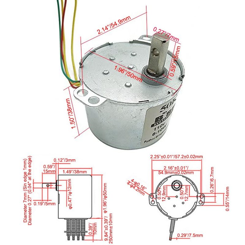 - Voltage: 110V AC, Speed: 10rpm, Power: 6-10W, Size: 50*38mm