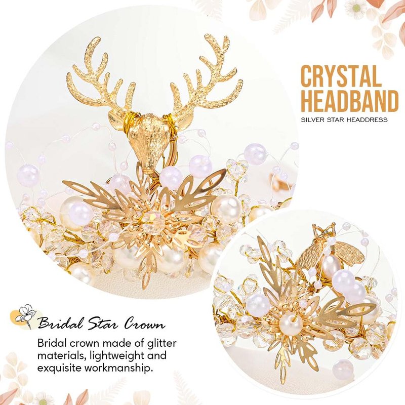- Gold Reindeer Headband for wedding is made of pearls, beads, antler crystal and alloy.