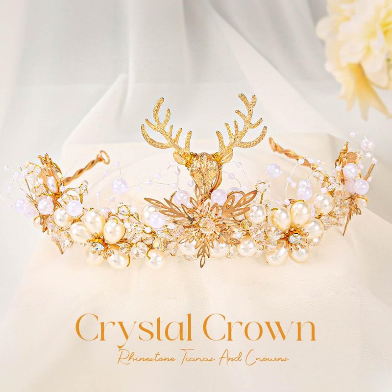 Gold pearls headdress with a antler, deer hair accessories symbolize wealth, peace. Deer and pearl are combined to makes hair accessories more designed and unique. We will continue to innovate and create more exquisite products to return to customers. We hope that every guest can achieve the perfect image in his heart. Whether it is for important occasions or everyday wear will make people look bright, headdress will make you charming and elegant. Welcome to Brishow store!