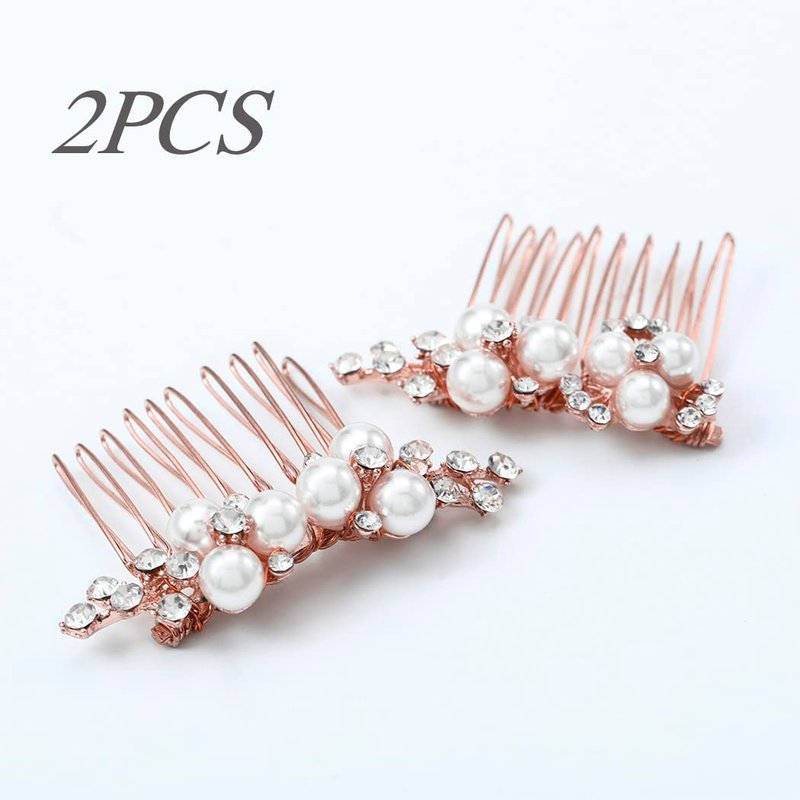 Brishow Pearl Bridal Hair Comb Rose Gold Rhinestone Wedding Hair Accessories Crystal Hair Piece for Women and Girls (Pack of 2)