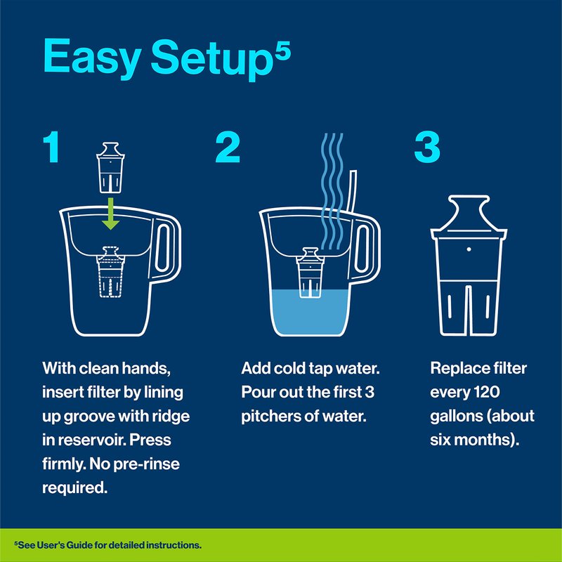 - Compatible with all Brita pitchers and dispensers except Stream; just insert filter into reservoir, line up pitcher notch with filter groove, press firmly to ensure tight seal