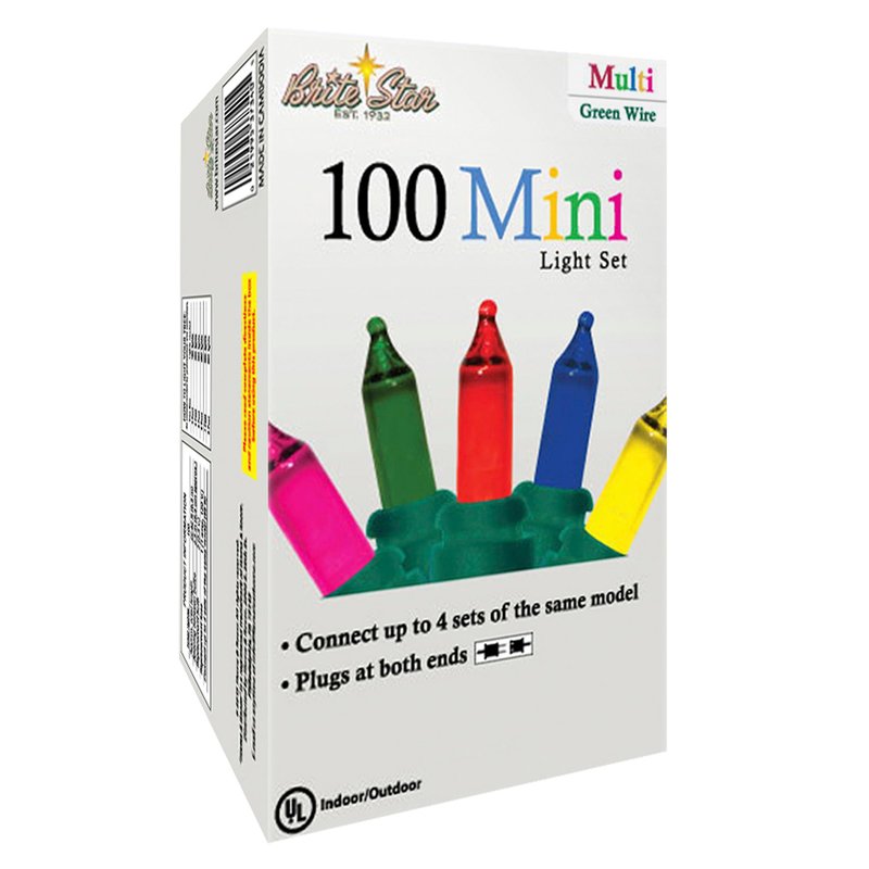 Brite Star 100 Lt String Lights, Multicolor, Green Wire, 22 Ft