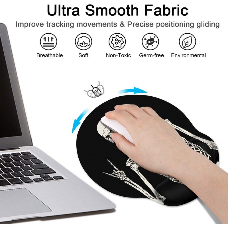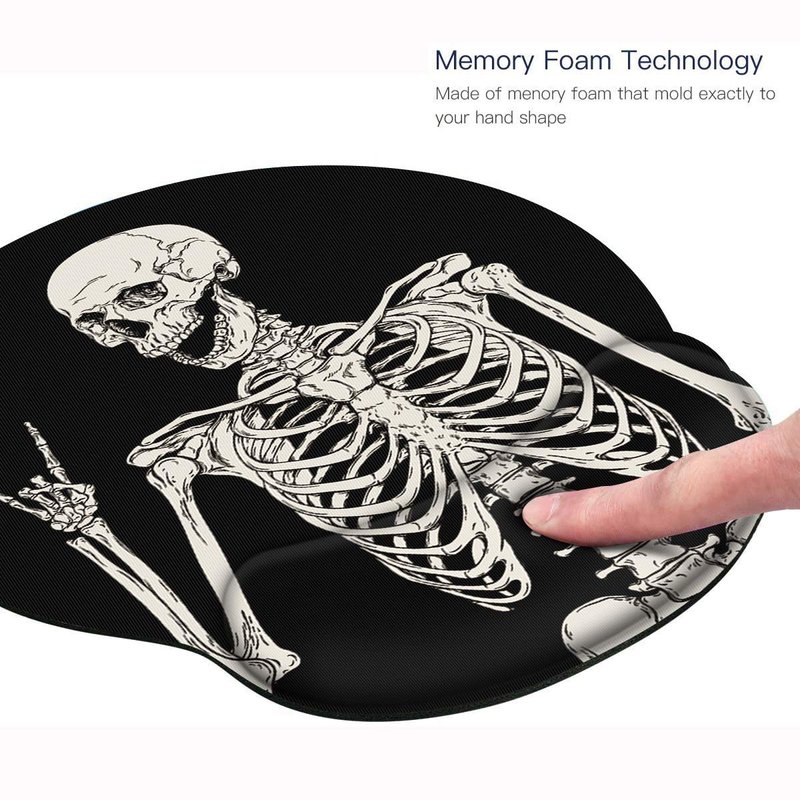 Britimes Ergonomic Mouse Pad with Wrist Support Black Human Skeleton Skull Non-Slip Rubber Base Mousepad for Home Office Gaming Working Computers Laptop Easy Typing & Pain Relief