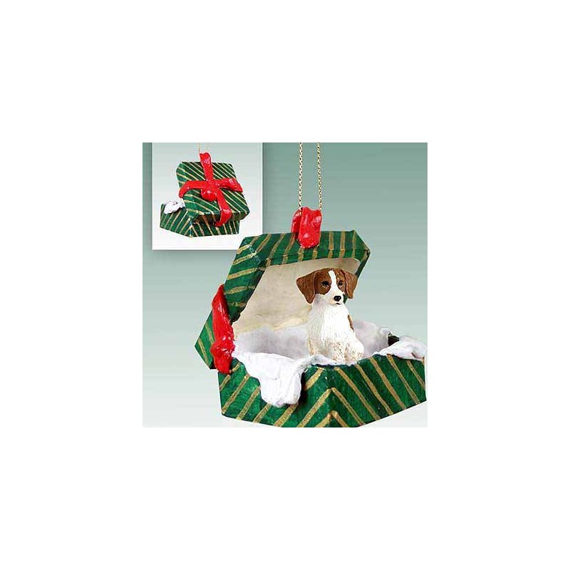 Brittany Gift Box Christmas Ornament Brown-White - Delightful!