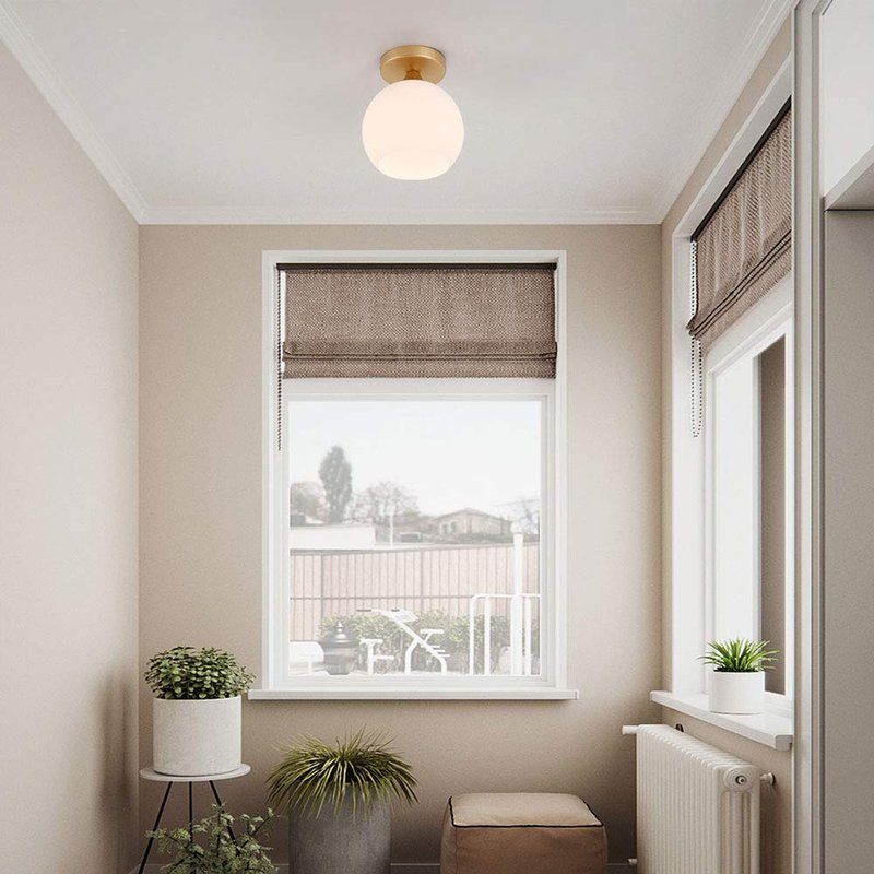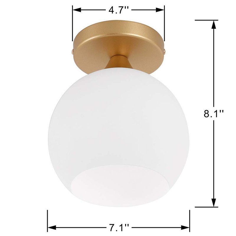Brixury Gold Semi Flush Mount Ceiling Light Fixture with White Glass Globe Shade