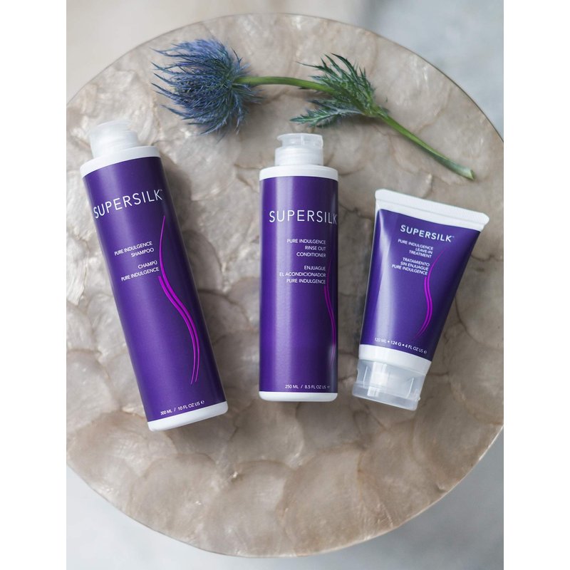 RINSE-OUT CONDITIONER Brocato Supersilk Pure Indulgence products strengthen and protect all types of hair while leaving behind a smooth, sleek look that lasts. After washing with the Supersilk Pure Indulgence shampoo, follow up with our Supersilk Pure Indulgence Rinse-Out Conditioner to nourish and fortify each strand. Our products are paraben and sulfate free as well as color safe. Pick up a 3 or 8.5 ounce bottle today! EXCLUSIVE NANO SILK Formulated with our exclusive Nano Silk Complex, this concentrated conditioner works deeply to smooth, strengthen, nourish and detangle. Frizzy, wild hair will become smooth, soft and manageable. You won’t be able to stop running your fingers through it! SMOOTH AND SLEEK The secret behind your silky new hair is a silk protein produced by the silkworm called sericin. Not only does it tame frustrating flyaways and control volume, it also helps the conditioner to rinse completely from your hair. No heavy residue will be left behind! BRILLIANT SHINE Want the sleek, sexy hair of the women you see on your TV and movie screens? Our formula’s hydrating macadamia seed oil improves your hair health and gives your locks a glossy look, breathing new life into once dull, lifeless hair. SOFTER FEEL Silk amino acids penetrate your hair cuticles and provide them with essential moisture. Each strand will be smooth, soft and fully nourished! -BrocatoSupersilk Pure Indulgence Conditioner -Paraben/Sulfate Free and Color Safe -Available in 3 and 8.5 oz
