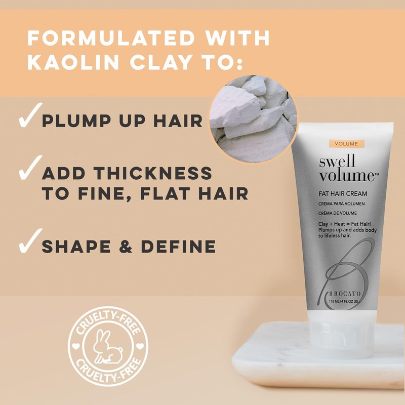 Brocato Swell Volume Hair Cream, 3 Pack, 6 Oz: Volumizing & Thickening Cream for Men & Women | Heat Activated Fat Hair Volumizer Cream Shapes & Adds Thickness to Thin Hair | Clay Formulated