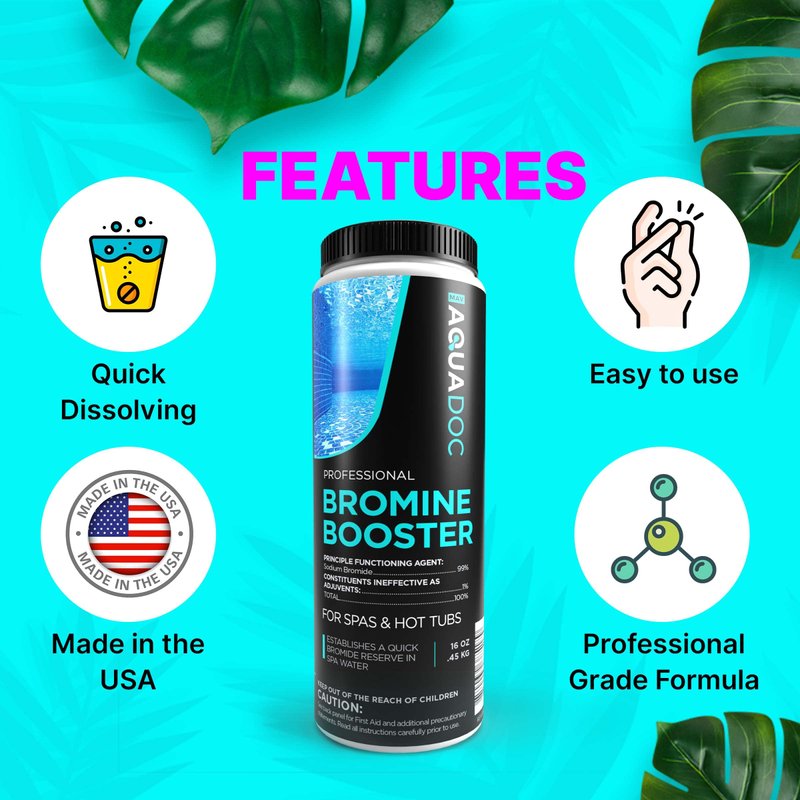 Maintain crystal-clear water in your hot tub with AquaDoc's Bromine Booster & spa shock – the perfect solution for hot tub owners looking to keep their water clean and safe. AquaDoc's sodium bromide booster is a powerful oxidizing bromine product designed to boost the effectiveness of bromine in your hot tub. It's a specially-formulated blend of bromide powder plus iron bromide that quickly dissolves in water to create an efficient sanitizer to get clear hot tub water.