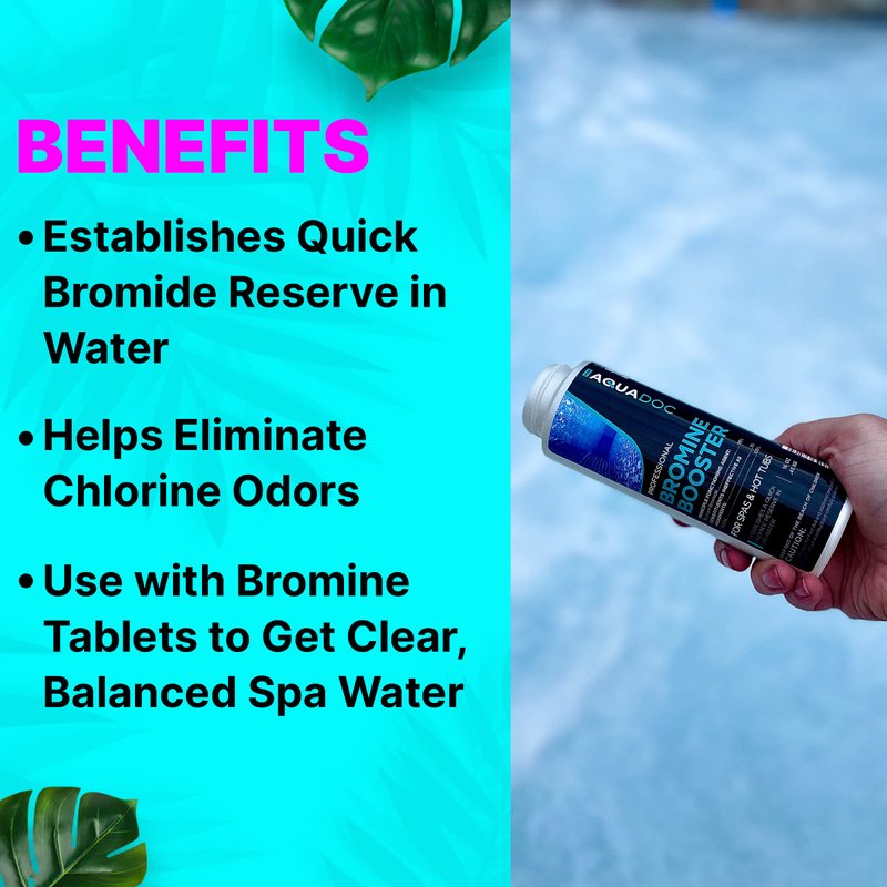 - Establish immediate bromide reserve - Super fast-acting bromine booster and spa shock helps you establish immediate sodium bromide levels in your hot tub to reduce chloramines and bromamines.