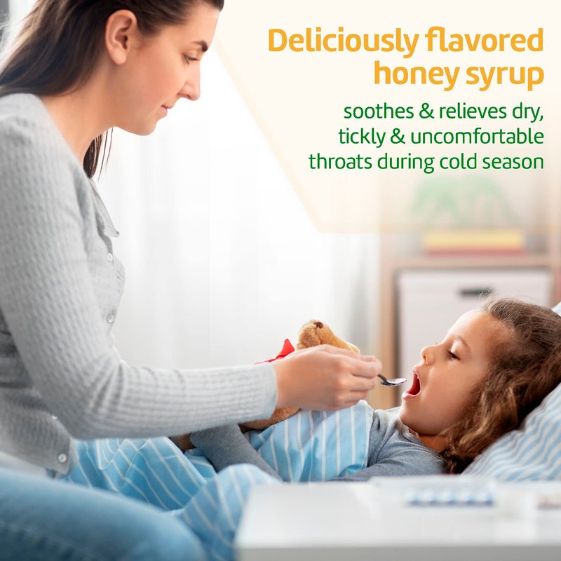 - Deliciously flavored honey syrup soothes and relieves dry, tickly and uncomfortable throats during cold season