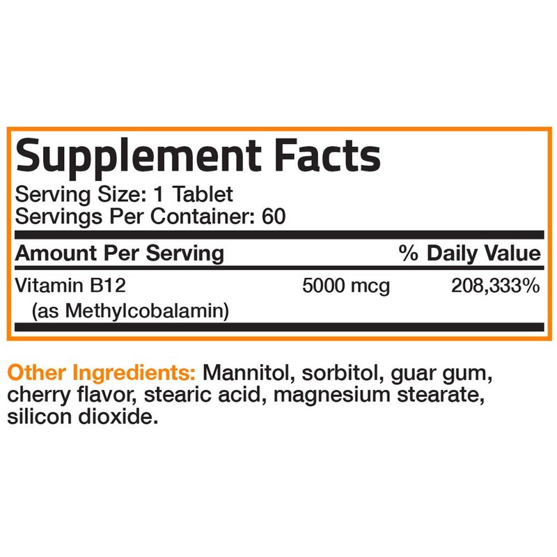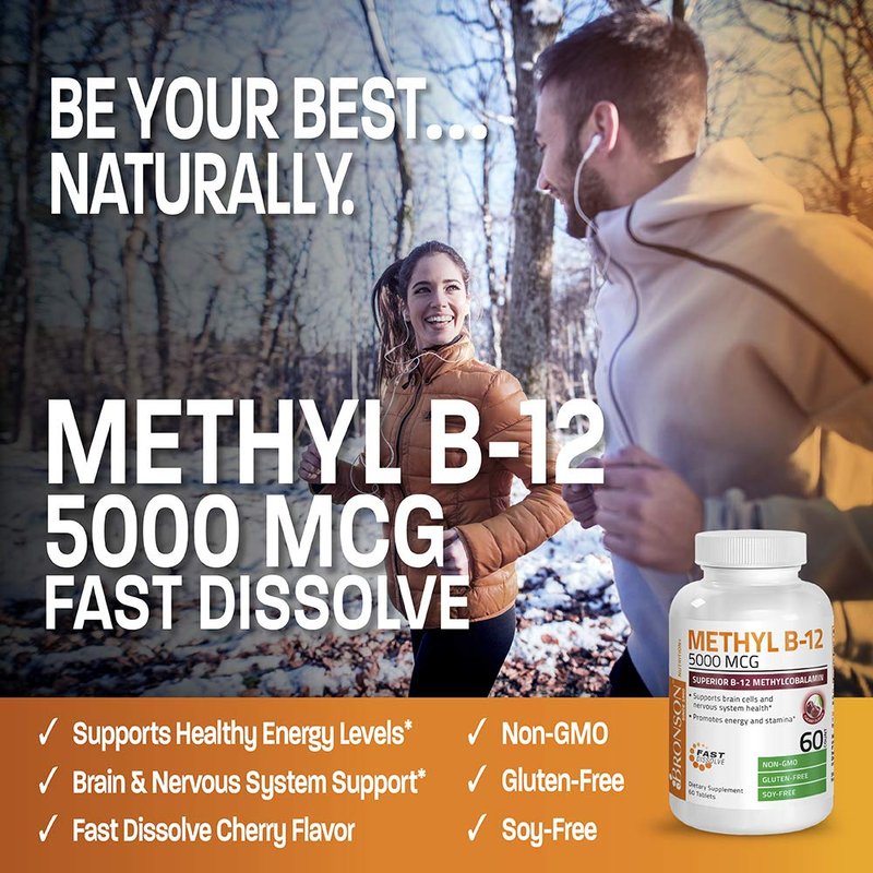 Bronson’s Methyl B-12 5000 MCG provides the superior form of Vitamin B-12. By using Methylcobalamin, Bronson’s formula utilizes the most biologically active form of B-12 for quick absorption. Delivered in a fast-acting tasty cherry tablet, our Methyl B-12 supports healthy energy levels, brain cell health and nervous system function.* Bronson’s high-quality formula is Non-GMO, Gluten-Free and Soy-Free tested at our registered cGMP Registered New York Facility.