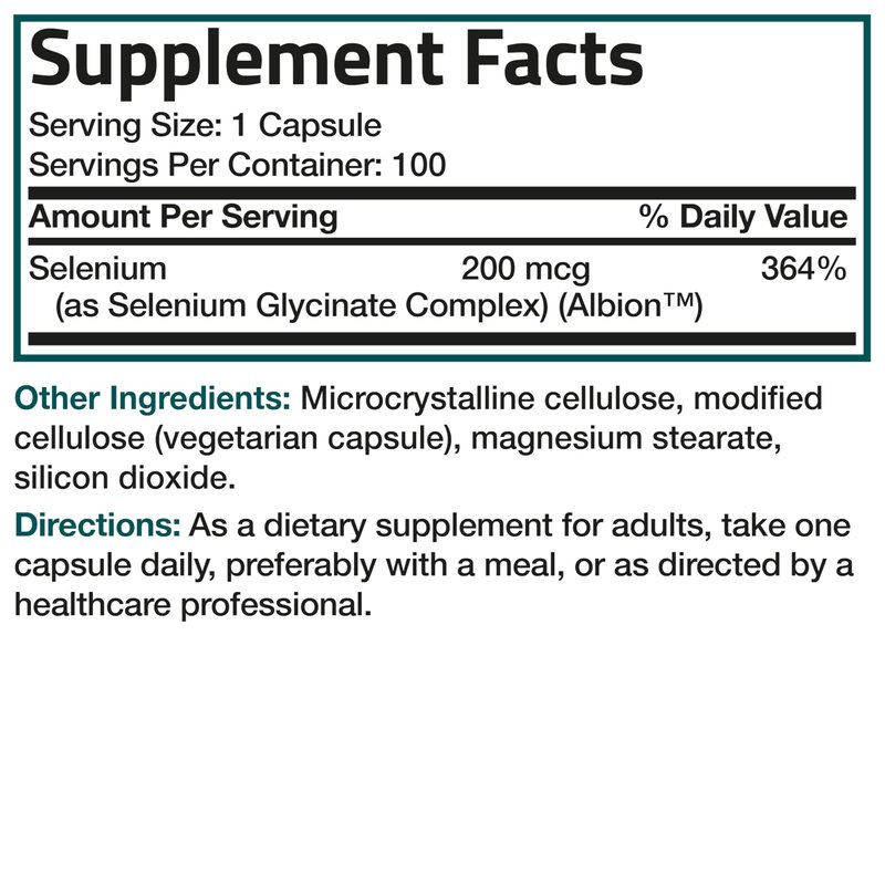 Bronson's Selenium 200 mcg provides selenium in an amino acid chelate form.