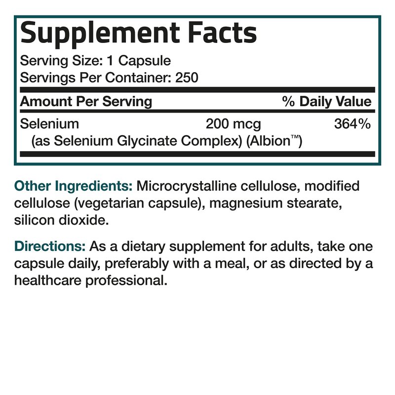 Bronson Selenium 200 mcg – Yeast Free Chelated Amino Acid Complex - Essential Trace Mineral with Superior Absorption, 250 Vegetarian Capsules