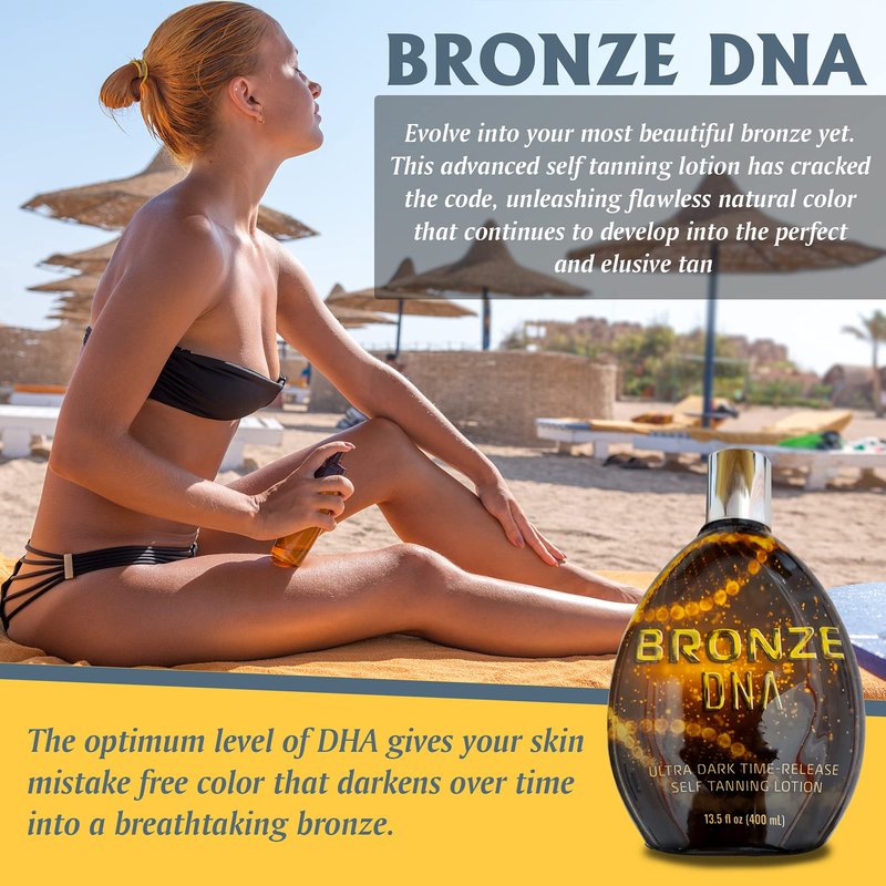 - ✅[Your Dream Tan Revealed] – Blast through your tanning plateau w/ Bronze DNA self-tanning lotion: the most effective gradual sunless tanner ever! Evolve your tan, so you can glow with confidence this year. So natural, they’ll think it’s in your DNA!