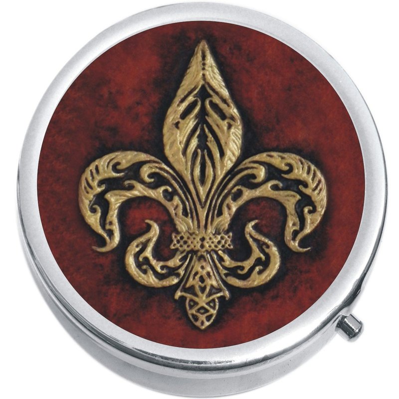 Bronze Fleur de Lis Medicine Vitamin Pill Box - portable pillbox case fits in purse or pocket