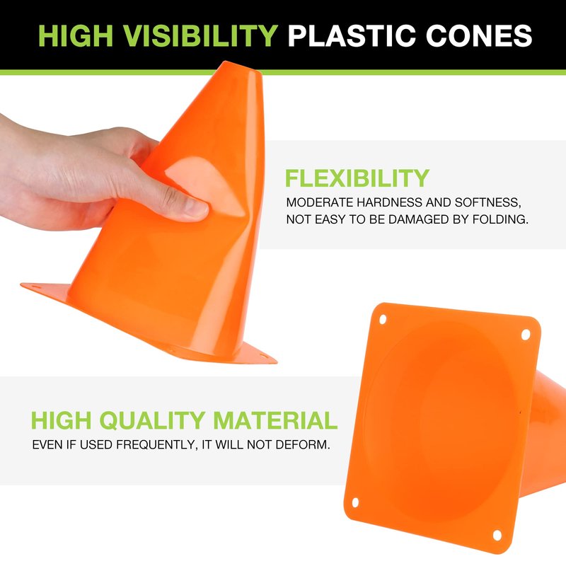- Durable and Versatile: Made of high-quality materials, these cones are sturdy and long-lasting. Perfect for soccer, basketball, football, and other sports activities.