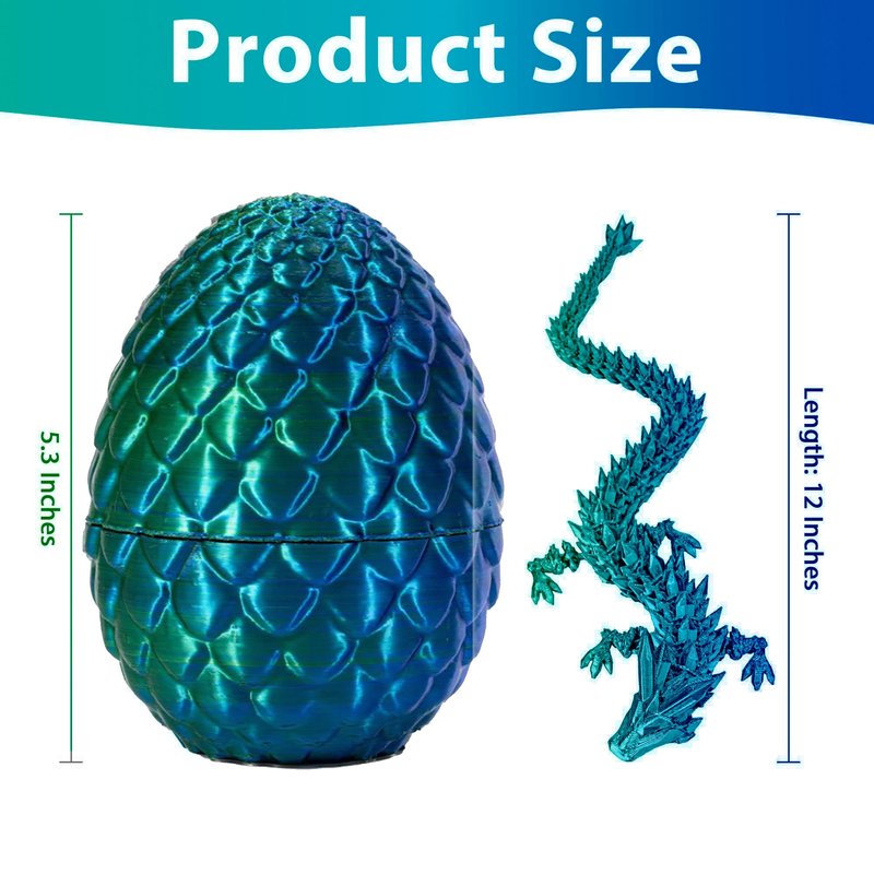 - 【Who is this mystery egg for?】: This Mystery Egg is designed for people of all ages who share a passion for dragons, mysteries and surprises. It is a magical gift for children, a sought-after collector's item for adults and a magical eye-catcher for any home.3D Printed Articulated Dragon can be used as decorations for Halloween, Birthday parties, New Years, Christmas and various festivals,or as birthday gifts for children, lovers and friends.It's a thoughtful choice for various occasions.