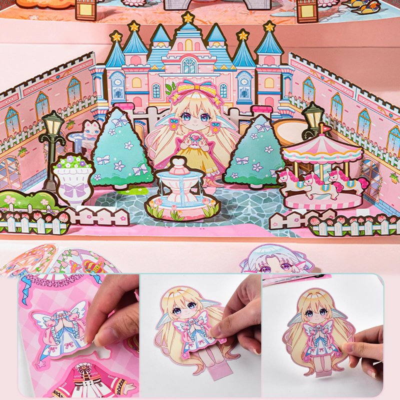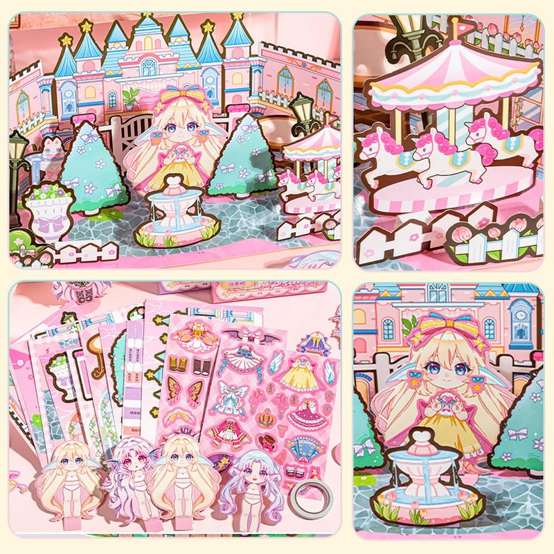 - DIY 3D Princess Castle Scenes: You will get a DIY 3D Princess Dress-up sticker scene consisting of 10 content material cardstock, 2 Princess dress-up stickers, 4 character cardstock, and 2 standing card bases that can be folded into a 3D house, which is very fun and creative.
