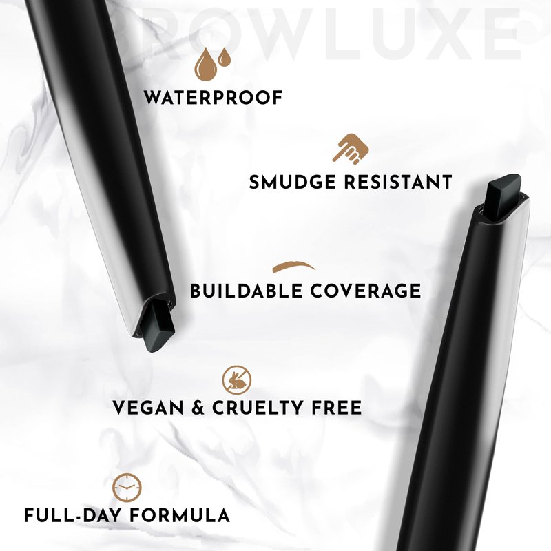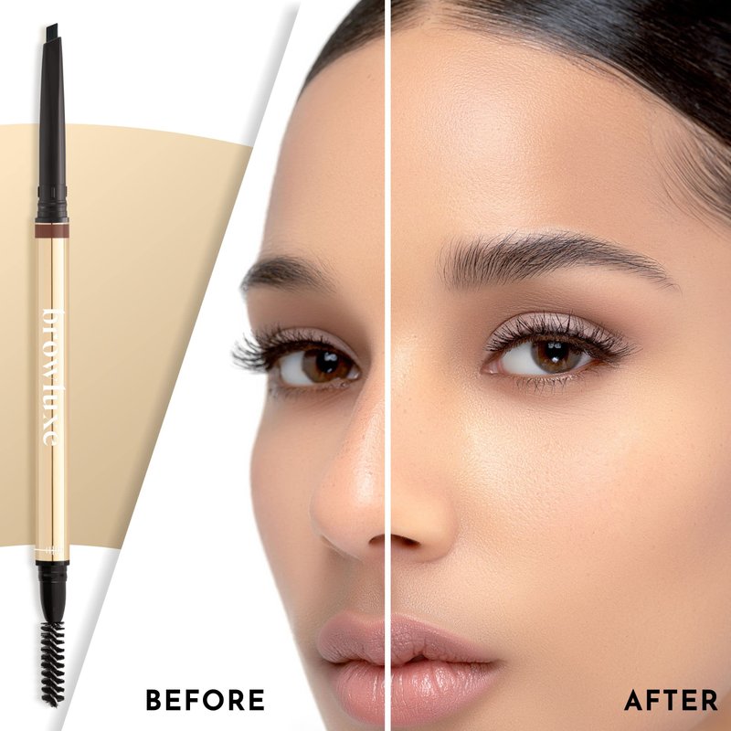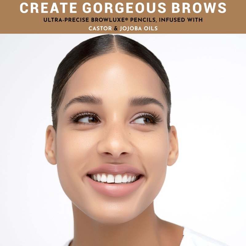 The Browluxe Precision pencil is an ultra-thin, high precision pencil with buildable coverage. The pencil is infused with Castor Oil & Jojoba oil, and equipped with a 2cm spoolie brush, allowing you to build the eyebrows you want.
