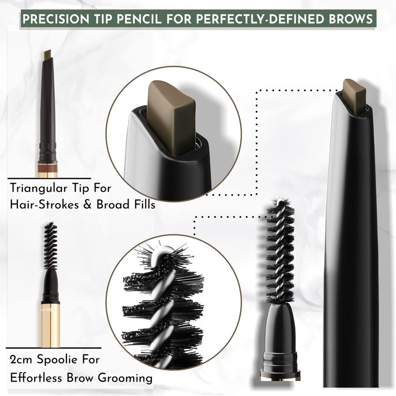 - Our eyebrow pencil helps you achieve flawless brows with our unique triangle tip, allowing for hair-like strokes with the 0.25mm side and seamless filling using the 1mm side.