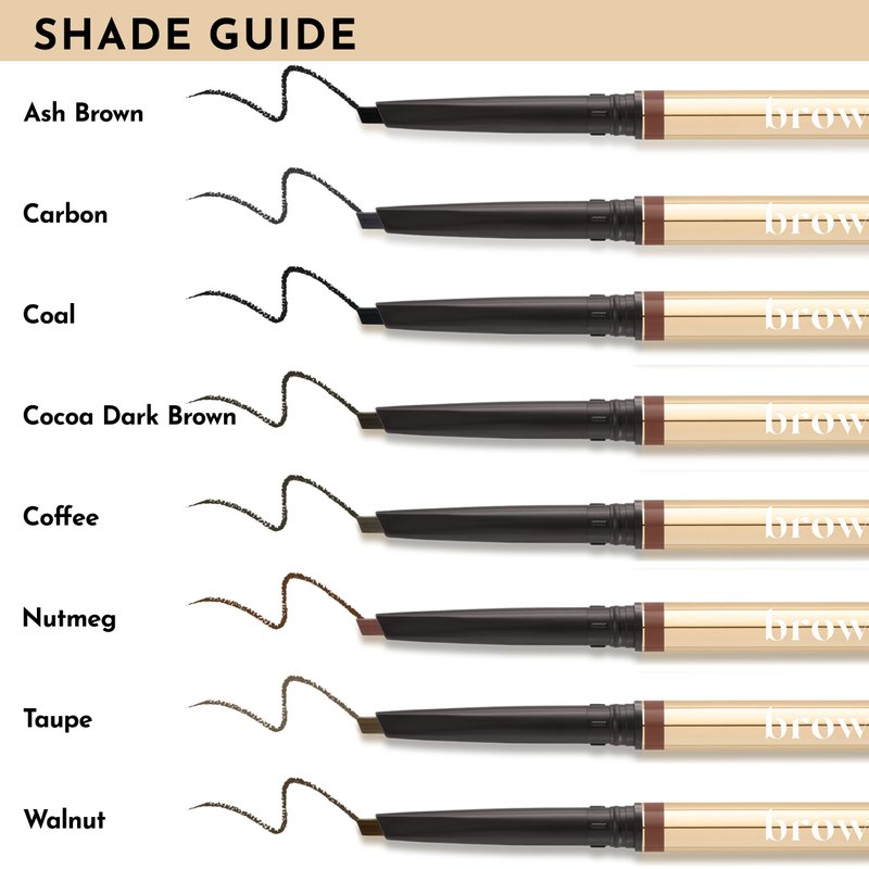 - Designed to define, fill and shape your brows for all occassions. Available in carbon, coffee, taupe, ash, coal, walnut, nutmeg and cocoa.