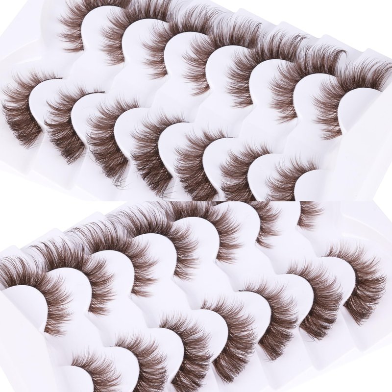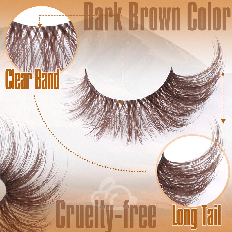 - Do the fluffy cat eye false eyelashes in brown with long tails strike your fancy? Who can resist this stunning caramel brown mink lashes? Brown eyelashes look softer and brighter than black false eyelashes. And in the sunlight, the 7 pairs of brown eye lashes will take on a bit of a reddish brown color - exactly the effect we wanted to create for a ๐ ๐จ๐จ๐-๐ฅ๐จ๐จ๐ค๐ข๐ง๐ , ๐๐ฎ๐ญ ๐ง๐จ๐ญ ๐จ๐ซ๐๐ข๐ง๐๐ซ๐ฒ eye look!