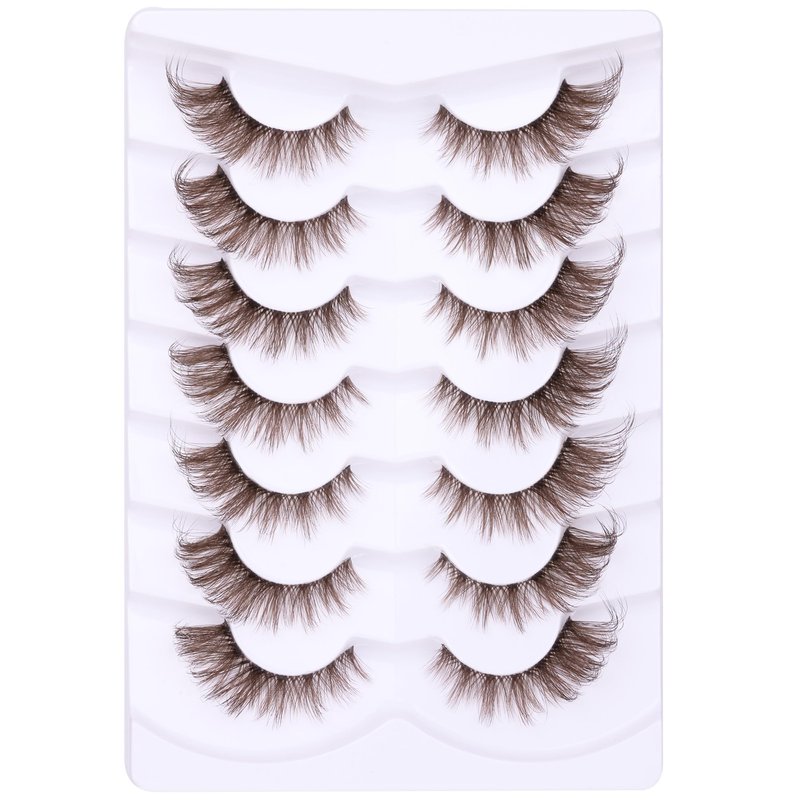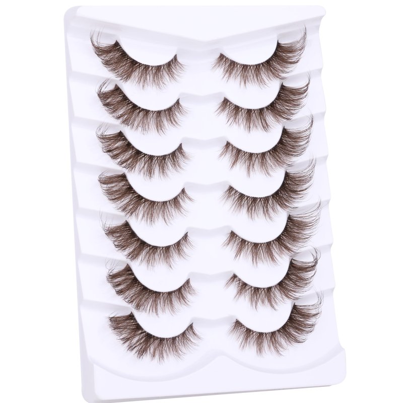 Brown Eyelashes Fairy Lashes Cat Eye Wispy False Eyelashes Strip Lashes Mink Fluffy Strip Lashes Brown Fox Eye Long Volume Fake Eyelashes 7 Pairs ALICROWN